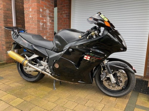 Double bubble screen (original inc), adj levers (originals inc), rear rack, through end cans (originals inc) replaced down pipes/collector s/steel (after market), rear indicators (originals inc), there are a few marks on the body work but nothing serious, one corner of the front fairing around the screen has at some stage (B4me) been broken but has never caused any concern, some fairing fixing have been replaced due to originals failing, there is a small tear on seat pillion section. A new gel type battery is included. Full set of keys, no keys have ever been cut for this bike. DataTag paper work inc if relevent.
