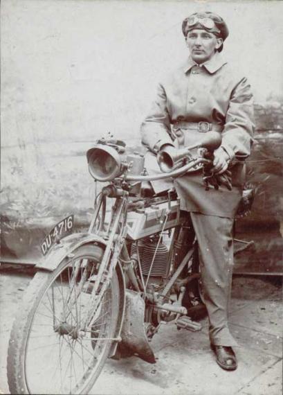 Add Your Photos!Very many thanks to Lou Dalby for this great picture of his grandfather George Dalby astride his 1913 Triumph. George was a competitor in many events in the 1920s. He ran a workshop in Sparkhill, Birmingham where he converted ex-WD Model H’s to full chain drive and also built Victor sidecars. You can see one of the converted Triumph’s below. If anyone has any further information on these or the sidecars, please let us know as Lou is trying to find out more.