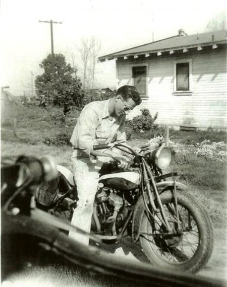 This is my father, Ken Scholten, circa 1930 on what I believe is an Indian. Picture taken in Iowa, USA