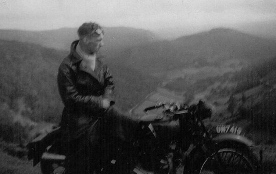 Add Your Photos!Thanks to Richard Williams for these pictures of his father, Gwynfor Williams, on his bike. The pictures were probably taken in North Wales between 1939 and 1941. Richard is confident of this date range since it’s war time (blackout device on headlight ). After 1942, he was in active duty with the RAF, flying Bristol Beaufighters from North Africa. He was shot down and spent the rest of the war as a guest of Germany in Stalag Luft 1. The bike is either a 250cc 2/1, a 350cc 3/2, or a 500cc 5/2 model.