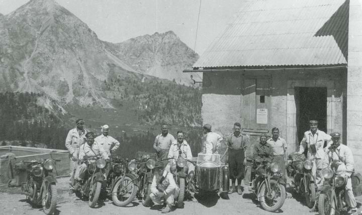Add Your Photos!Thanks to Mark Bolland for these pictures of a tour his grandfather did in 1938 on Triumphs around Europe with his mates (reg’s BWW 977, CAK 771, END 377 (his grandad’s) NF2047 and JX5320. The tour took them to the South of france then back through Europe to Norway at the start of war. When Mark has reconstructed the tour he is thinking of recreating it, although he admits that the white boilersuit, leather greatcoat and flat cap combo hasn’t really stood the test of time…..