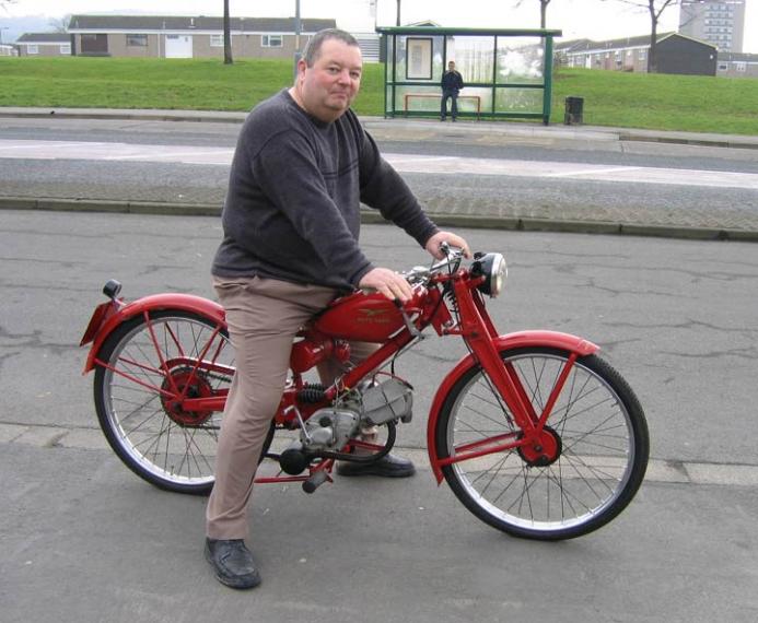 Thanks to Ulf Sonnevelt for sending me this picture of his friend Colin from Darlington and his 1949 64cc Guzzino