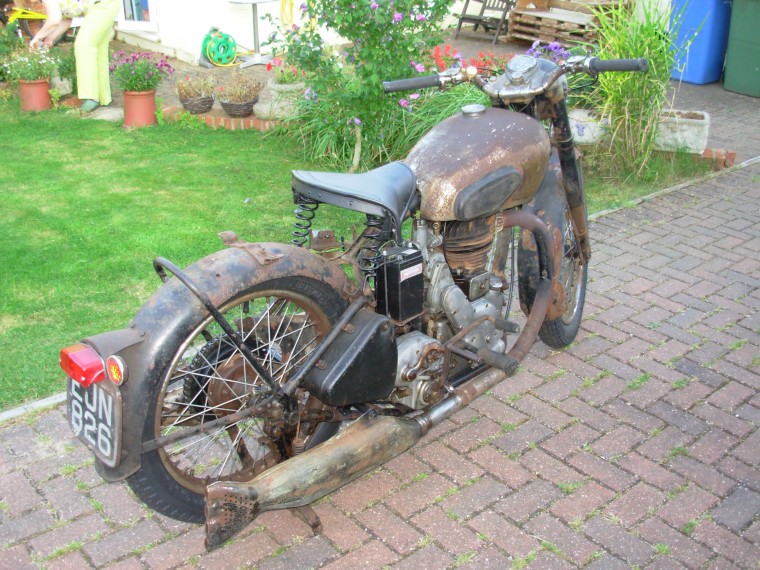 Many thanks to Fletcher for these pictures of his lovely original Royal Enfield Model J2. It’s a 500cc ohv single twin port made between 1947–1954. A rigid framed telescopic fork model, it offered a flashy twinport exhaust system – twin exhaust pipes one each side of the bike. And it’s in a beautiful original condition.
