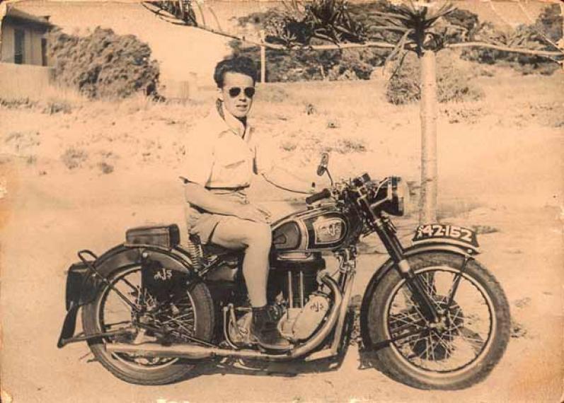 Add Your Photos!The attached photo is of Craig’s father. It was taken in the early to mid fifties in Australia. He worked as a civilian mechanic on or near the military base in Woomera Australia. It was there at this time that the United Kingdom tested its first atomic bomb. As for the motorcycle, I believe it is a Model 18. He recalls it as being a 1952 model year (he gets that from the last two numbers on the license plate) and he says it was a 500 c.c engine. Thanks to Mukul for pointing out that the manufacture of rigid bikes ended in 1949. Perhaps there was a delay in getting this one registered?