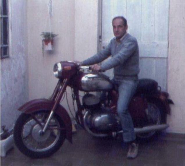Many thanks to Claudio Carnevale of Argentina for this picture of his Father. The bike is still in their family.