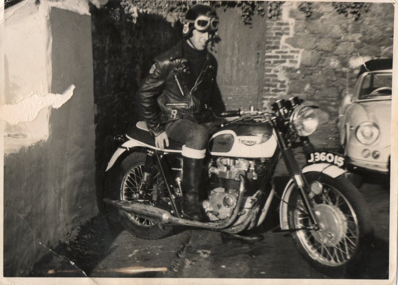Here i am on my Triumph Bonneville which is his first Triumph, this Triumph is hi-fi Scarlet/white.