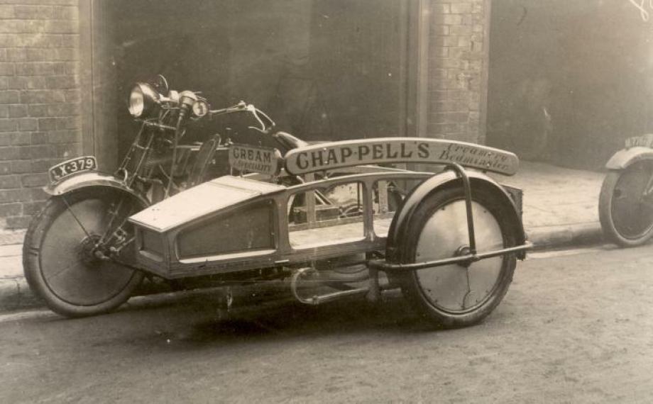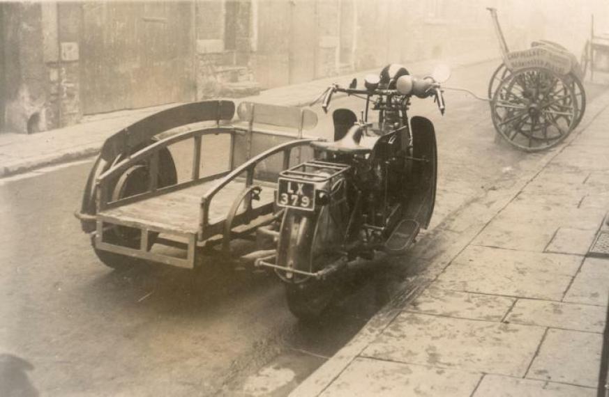 Add Your Photos!Many thanks to Andy Breeden for these absolutely great pictures. The bikes belong to a Creamery based in Bedminster, Bristol. And thanks to Howard Burrow for identifying the bike as an early 1920′s AJS V Twin.