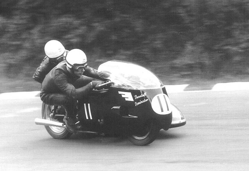 This is Colin Seeley with Wally Rawlings on the 650 Dunstall Norton in the mid 60′s at Brands Hatch.