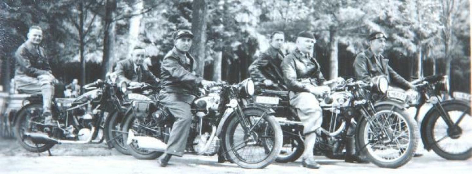 Many thanks to Gregg Galzerano for these pictures. They show his Grandfather (Far L sitting high) before WW11 in Germany on his NSU. He told him that the Nazis took the motorcycle and used it for the war. They said it would be him or the bike. He later went  to work on the V1 and 2 rockets before being captured by the Americans with Dr. Von Braun and sent to the US under Operation Paper Clip.  And thanks to Bernie Stevens for identifying the bikes in the picture… they are Left to right Gregg’s father is sitting on a 1936 NSU-D RAD 201 pony, next NSU 251 OSL 1937, the next one is not easy but I think it’s a ARDIE DBK 503 1936, and last is another NSU 201 pony.