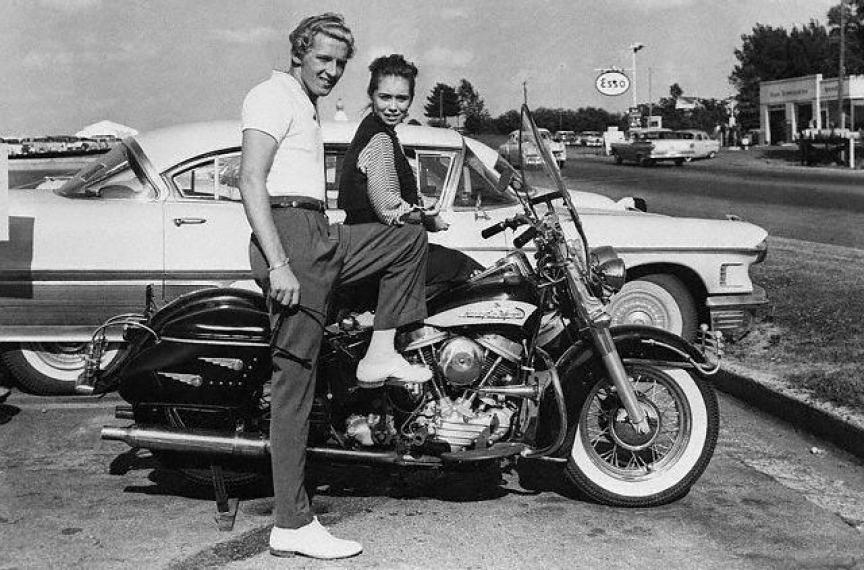 ES UNA HARLEY 74cc ,FLH,DEL AÑO 1956. MUY LINDA MOTOCICLETA .Mr y Mrs LEE LEWIS