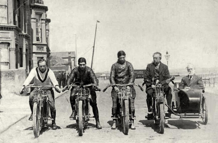 Add Your Photos!A special thank you to Simon O’Donovan for this picture of his Great Grandfather, Dan O’Donovan in the Sweater & the Braid Bros. between the Nortons in the Sidecar combination. Daniel O’Donovan was one of the names that helped put the Norton name on the Brooklands map. He joined Norton in 1913 and won countless races and broke many records. He later became known as "The Wizard", a name given as a mark of his tuning skills. He later became the Norton racing team manager. One of his more memorable feats was exceeding 80mph on a 500cc bike – in 1914! A lovely photograph!