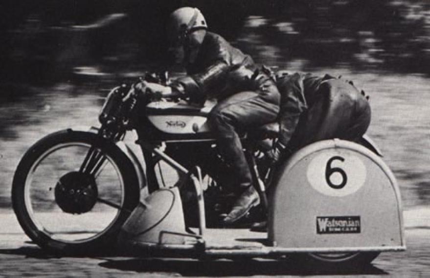 Eric Oliver and Denis Jenkinson on the very rare 596cc Norton. There were about 6 of these made just before WW2