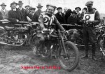 I obtained this photo in the belief that it depicted the German racing driver Rudolf Caracciola (his name has been handwritten on the back of the photo). During 1922-1924 he competed on an NSU and a Garelli in a handful of German events. I have been informed by motorcycle aficionados that the bike in the centre of the picture is neither an NSU or a Garelli. One suggestion is that it might be a Sunbeam or some other British bike. In light of this information I now have doubts as to whether the rider is in fact Caracciola.