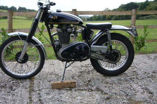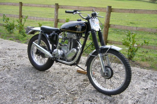 AJS I6c Competition Trials.(Late) Maurice Hocking converted to 410 cc lightened flywheels gearbox machined for lower 3rd gear. Marzochi fork stanchions I bought this bike in 1986 having only done 12000 road miles. I trialled it for a few years winning awards, I put low level Exhaust, road gears & oil tank back on for shows. Have all original trials bits & road gear lights dynamo wiring loom to make original or as competitive Trials bike. Rare opportunity to buy original bike with good Reg number.