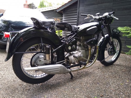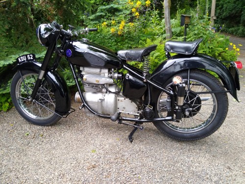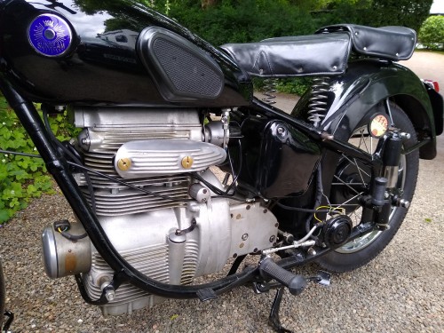 Sunbeam S8. 1950. 500cc inline twin. Shaft drive. 12v conversion. Original logbook and handbook. Some history, receipts and literature. Starts easily and runs well. Excellent condition.