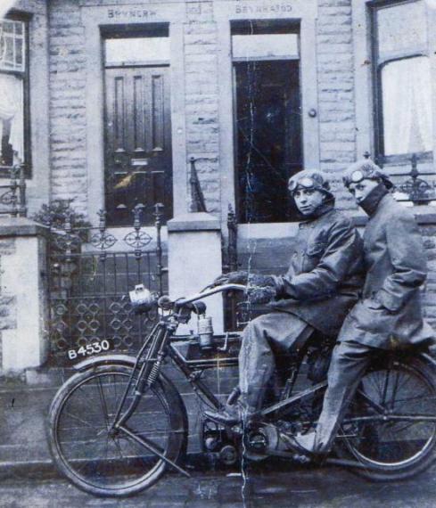 Many thanks to Brian Charlesworth for his picture./ It’s of his grandmother’s two brothers and was taken before the first world war. The men on the bike are Herbert and James Peel, and were both sadly killed in the war.  The bike is an Elswick, made in Barton Upon Humber around 1910-1912 – thanks to all those who pointed this ou.