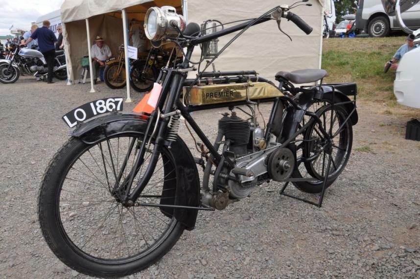 Add Your Photos!A lovely 1913 Premier at the Festival of 1000 Bikes in 2010. It has a left hand throttle, right foot clutch and 2 speed gearbox. It is a hand start model and gets 40mpg and 50mph.