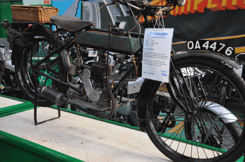 A very original 1914 New Imperial Light Tourist, restored after being hidden away for over 30 years. The engine was found to have been carefully rebuilt without a conrod and piston….!