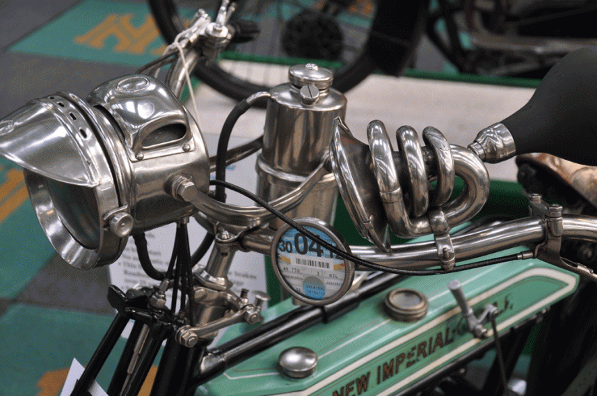 Another lovely New Imperial on display at the 2012 Bristol Classic Bike Show. This model features a two-speed gearbox with no clutch or kickstart.