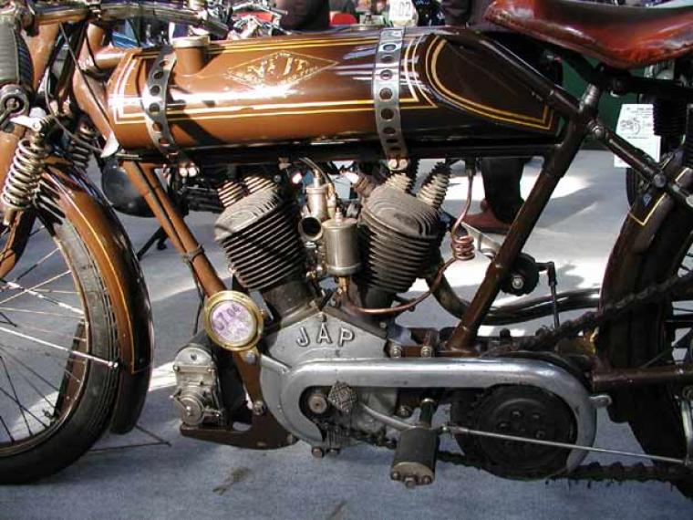 This is one of six bikes built for the 1920 TT and was entered by the factory in that year. It’s a 500cc JAP engined model in a P5 chassis. Picture was taken at the 2004 Bristol Classic Bike show.