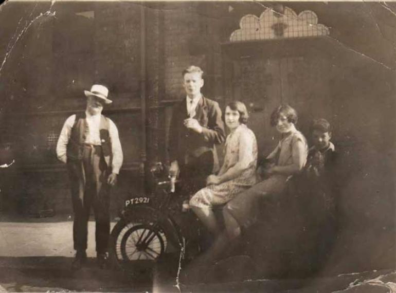 Many thanks to Ian Blake for this photo.  It shows his grandmother astride what he believes to be her motorbike in the mid 1920′s. Many thanks to Martin Shelley for identifying the bike as possibly a BSA 557cc sidevalve. The number PT2921 was issued in Durham, and this series ran from November 1922 until July 1927, so one would put a probable date of 1924 or 1925 on it…