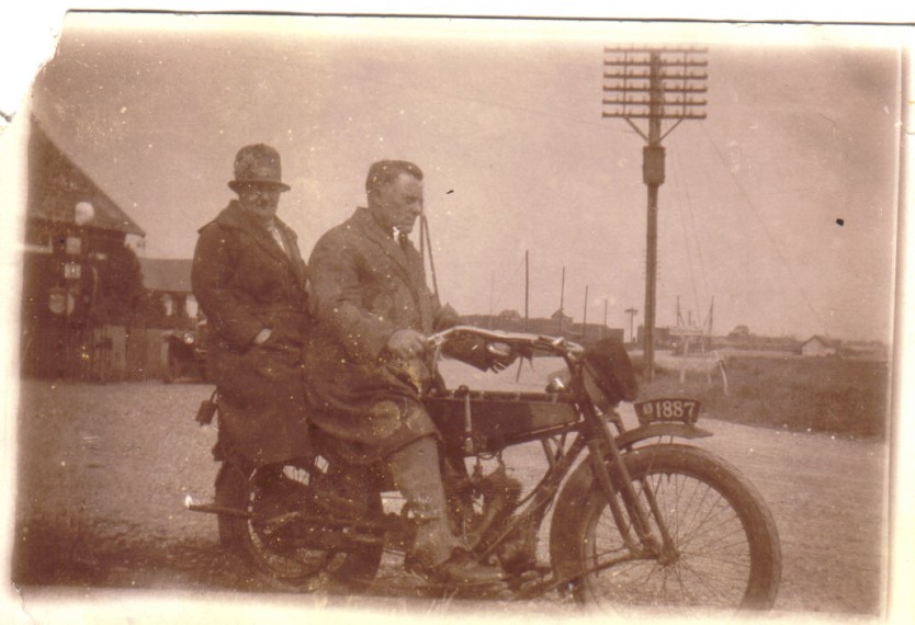 Grandpa and grandma on their first motorbike in the early 20ties.