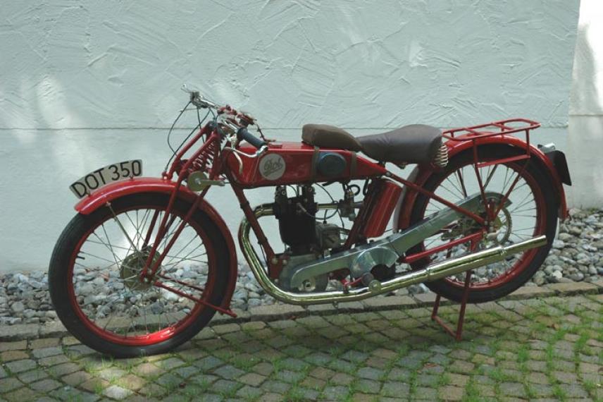 Thanks to Claus Riemann of Germany for these pictures of his restored 1927 DOT J1 Sports 350. The DOT was one of those bikes which came to light in Djakarta/Indonesia in 1987 when some old buildings had to be removed. The bike was never used! The whole story was in Classic Motor Cycle March 2000. He aquired the DOT partly restored from a private museum owner who ahd already painted all the parts.