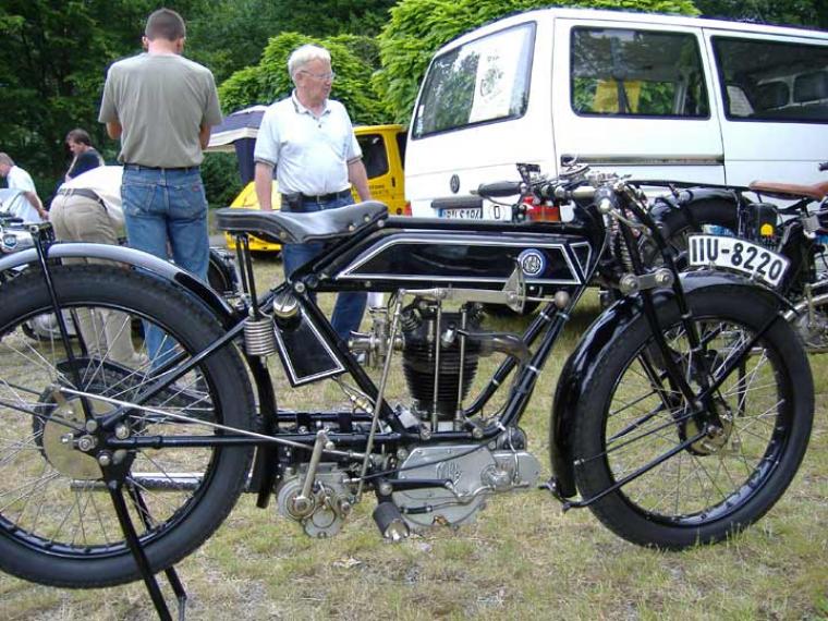 Thanks to Bernie Stevems for this picture of a bike I’ve never come across before.  It’s a 1927 Guldner – a direct (and unlicensed!) German copy of a Norton Model 18.