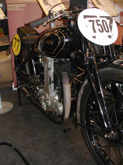 Ex-works racer ridden by Freddie Hicks. It’s a 1930 495cc AJS. This bike was on the VMCC stand at the 2005 Classic Motorcycle Mechanics Show in Stafford.