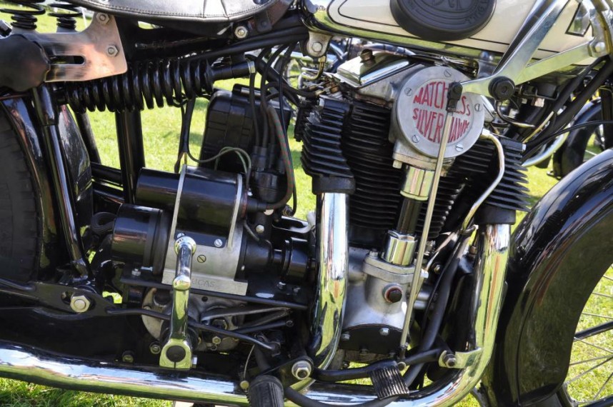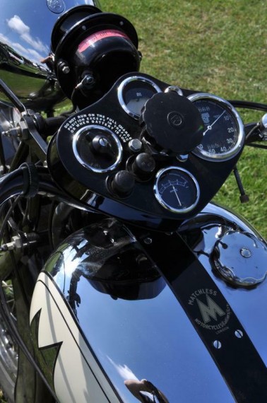 A very nicely presented 1930 Matchless Silver Hawk.  It’s powered by a 593cc V4 engine producing 26bhp and a very respectable 85mph.