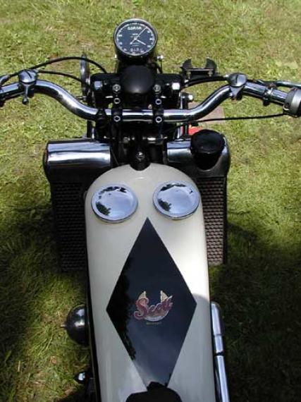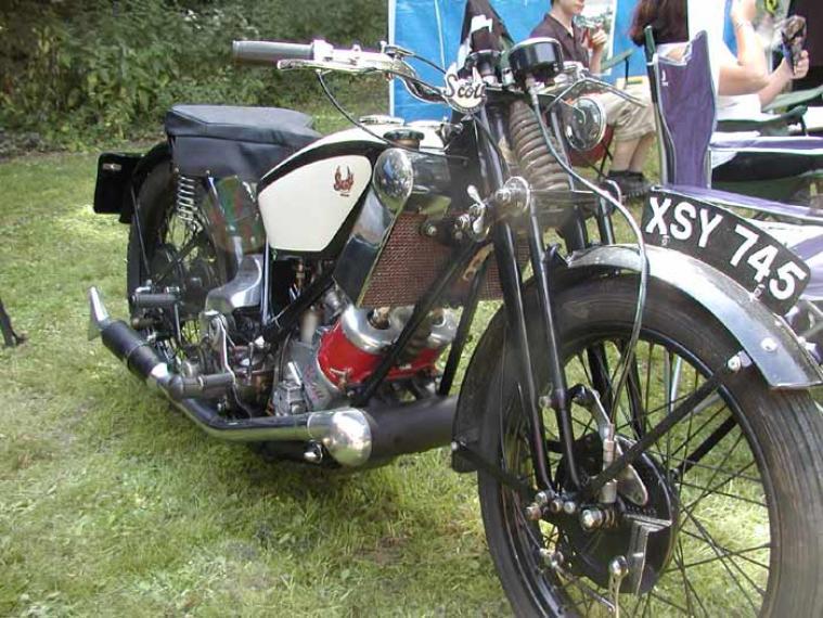 Owned by its current owner for 35 years, this is a 600cc 1930 Scott Flying Squirrel seen at the 2005 Calne Motorcycle Meet.