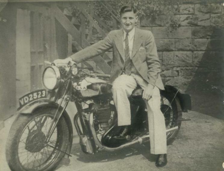 Thanks to David Feeney for this picture of his 93-year old mother-in-laws late brother Peter Carragher from Cambuslang, Glasgow on his BSA. Can anyone tell us what model this bike is?
