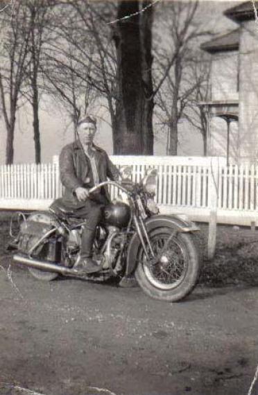 Add Your Photos!Many thanks to Dave Boyer for this picture of his great grandfather, Delmer West, on a Harley Davidson. The picture was taken at his farm in Pickerington, Ohio, USA. Thanks to Davide from Italy for identifying this as a Knucklehead from between 1936 and 1939.