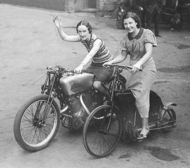 Add Your Photos!A lovely picture sent in by Ken of the USA. I reckon this is a mid 1930′s 500cc V twin – but not sure what the girl in the front is riding. I know which I would rather be on! The second picture was sent in by Dave Martin who cam across another picture of the same event! They were taken outside Earls Court, London in 1938 or 39. The caption for the second picture says that the older bike was built in 1902 and was one fo the first bikes sold in the UK. And further thanks to Mathieu Smeets of Belgium for identifying the other bike. It seems to be a Holden motor bicycle. They were build from 1897 on. Link: http://www.scienceandsociety.co.uk/results.asp?image=10306401