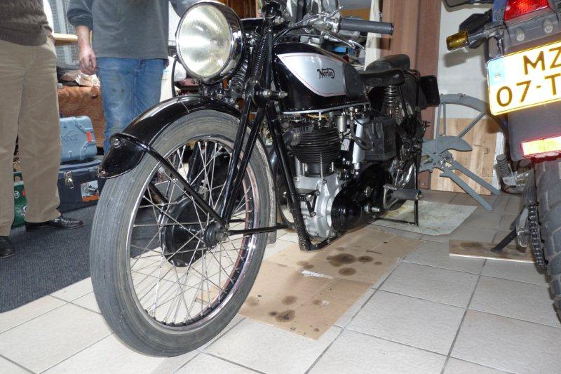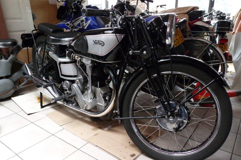 1. hi just admiring the norton just letting you know though its not a 33 , 33 had a left side front brake also in 34 they introduced a oil filter bolt to in the crank cases below the bevel gears which is visable in the picture . so it is safe to say its a 34 as in 36 the the frame changed , at the cradel it curved up more and the front brake adjuster on the fork moved up higher so one could adjust it whilst riding. loverly restoration nice bike well done kind regards gary.