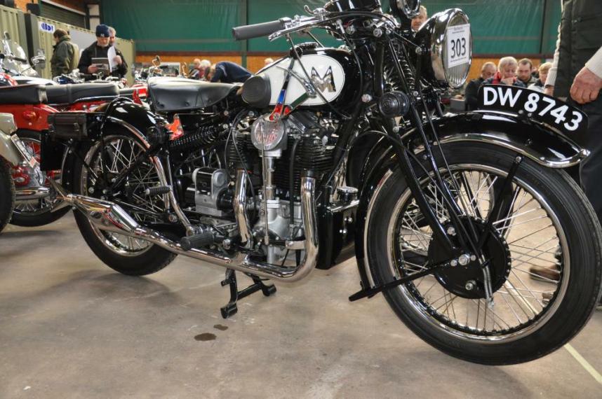 A 1934 Matchless 596cc Silver Hawk for sale at the Bonhams Auction at the Carole Nash Classic Mechanics Show in 2010.