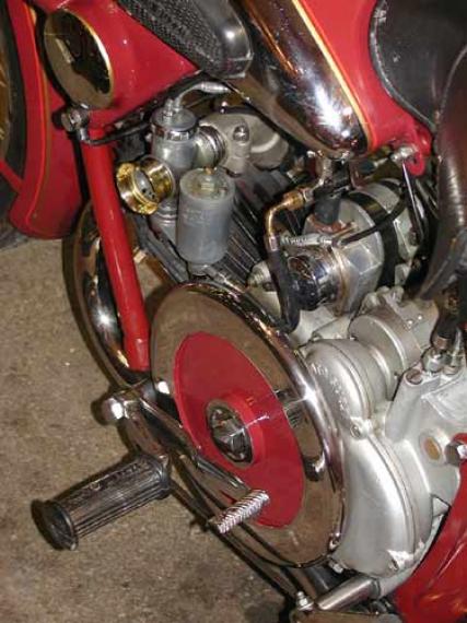 A 15HP 1934 Moto Guzzi 500S fitted with racing type front forks. This bike was on the Moto Guzzi Club GB stand at the 2005 Classic Motorcycle Mechanics Show in Stafford.