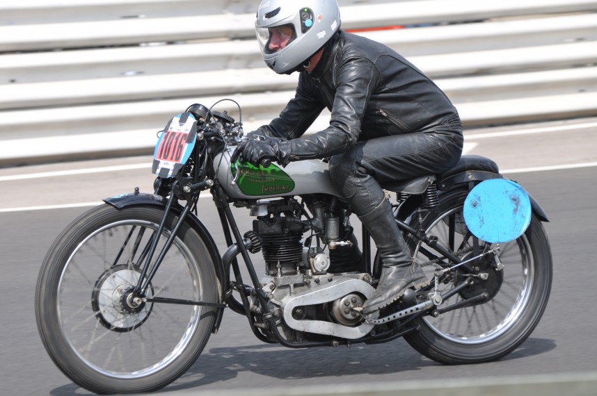 A 1934 New Imperial GP in action at Mallory Park as part of the 2011 Festival of 1000 Bikes.