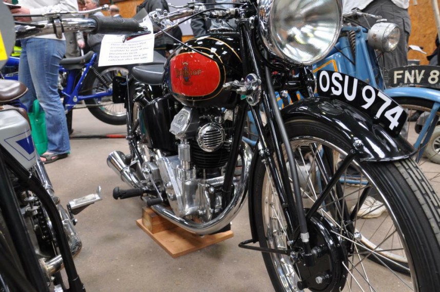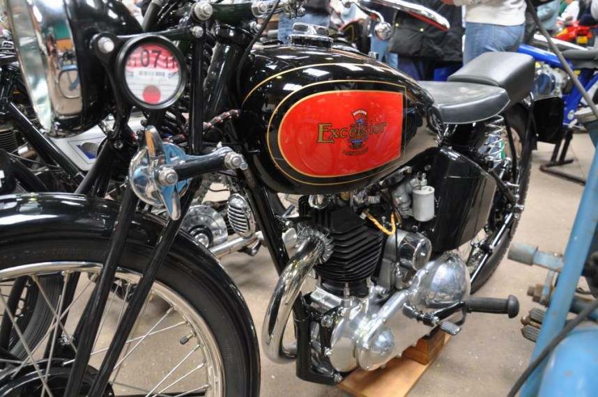 A nicely restored 1935 Excelsior Manxman being sold at the Bonhams auction at the 2011 Stafford Classic Bike Show.