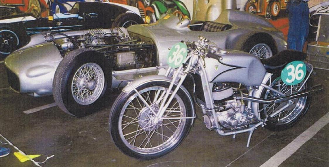 A stunning 1936 250cc DKW alongside a Mercedes.  This machine was a practice bike for the 38/39 Adelaide GP