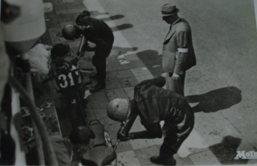 Pit stop at the 1937 Assen TT.  Freddy Frith and White (?).