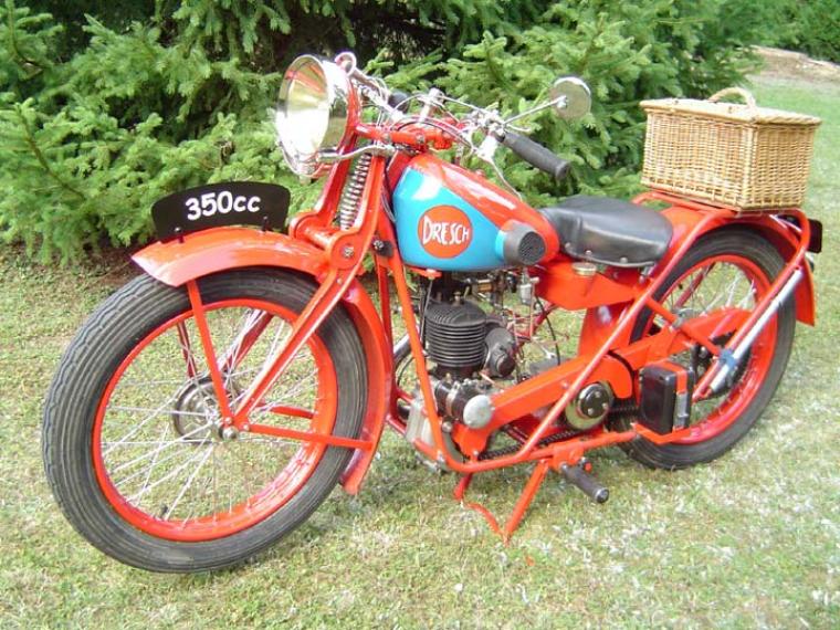 Many thanks to Henri Clopeau for these pictures of a bike I had not come across before.  The first picture shows his father, Léonce, who owned a Dresch in 1938… but it was requisitioned by the French army in 1940. Henri, being too young never saw the bike, but became familiar with it through photographs that his father kept framed on the wall.  Henri has always wanted to restore the same model of bike – and as you can see from the second picture he has succeeded, and done a great job.  The bike is powered by a 350cc MAG engine.