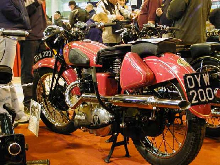 A 1939 500c Rudge Sports Special on the Rudge Owners Club stand. Taken at the 2004 Bristol Classic Bike show.