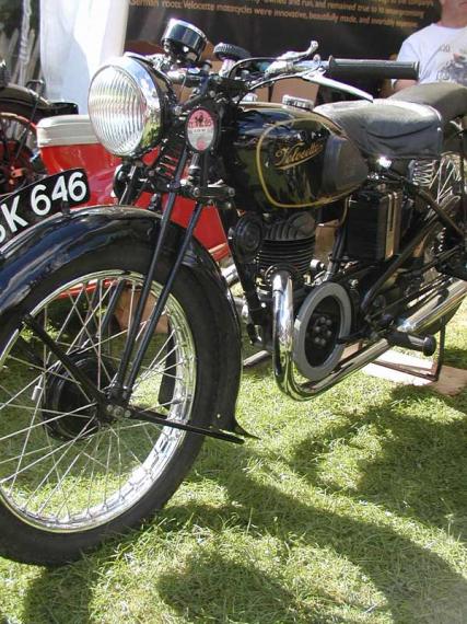 By the time this bike was produced in 1939, the competition successes of the 1920′s had passed and the 2 stroke GTP had matured into a ride to work machine of modest performance.  Another bike that was part of the "100 Years of Velocette" display at the 2005 Goodwood Revival meeting.