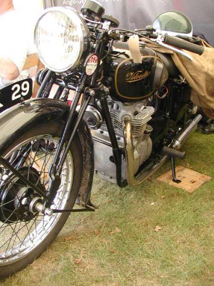 Add Your Photos!This is a rather unusual Velo seen at the 2005 Goodwood Revival. It’s a prototype of an advanced model that was never put into production. It is basec on a twin cylinder (yes – two pots on a Velo!) engine with counter-rotating camshafts and shaft drive.
