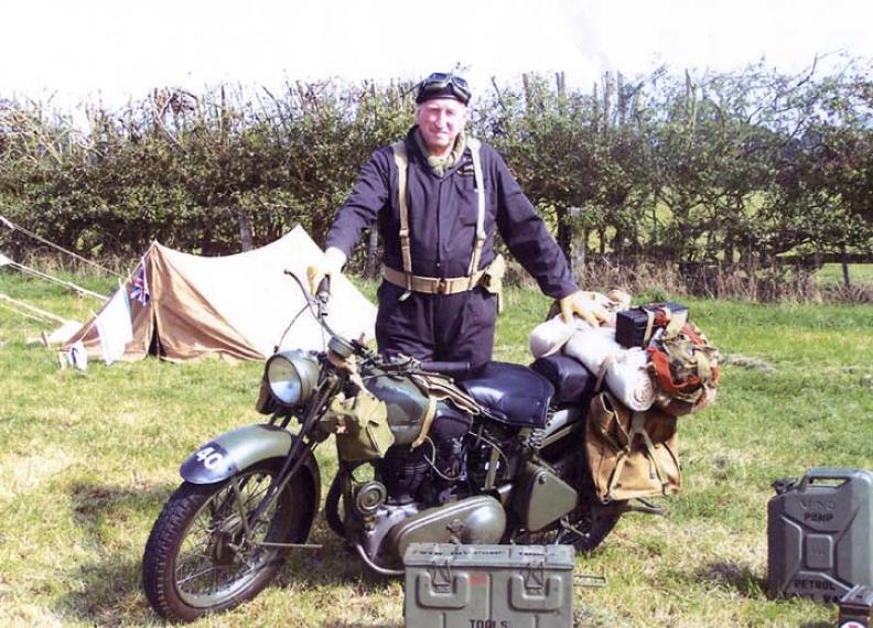 Add Your Photos!Thanks to Mavid Morse for this picture of his 1942 royal enfield WD/CO/B. "B" for the Burman gear box that was fitted to 3000 bikes when the Albion factory was bombed. Original "C" number – original matching engine and frame numbers – fully restored runner – painted with divisional HQ "40" on black back ground and the Divisional Sign of the 79th Armoured Division. He doesn’t know which unit it was issued to as its history is lost so he chose this one as he hashelped restore a WW2 Churchill tank of the same Division. New carb to befitted to complete restoration – will be appearing at a variety of military shows during the coming year as well as the Classic Car Show at the NEC.