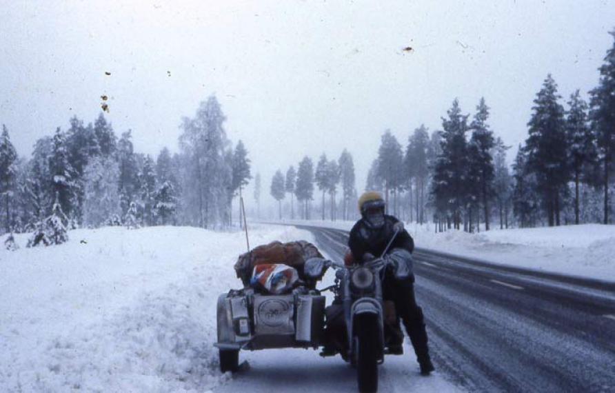 Add Your Photos!Thanks to Juan for this picture, It was taken on an obviously interesting 13000Km European winter trip some years ago. He is riding a 1943 BMW R75 outfit. This was taken on one of the coldest days (-38ºC) in Norway, not far from the Artic Polar Circle. On days like this I would normally take the car…!