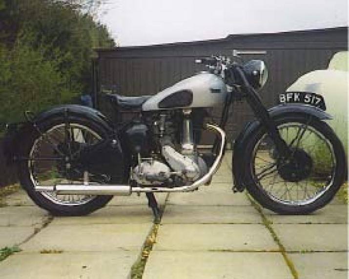 A 1946 BSA B31 350cc single. An early post war bike with much lighter rigid frame and speedometer in the fuel tank