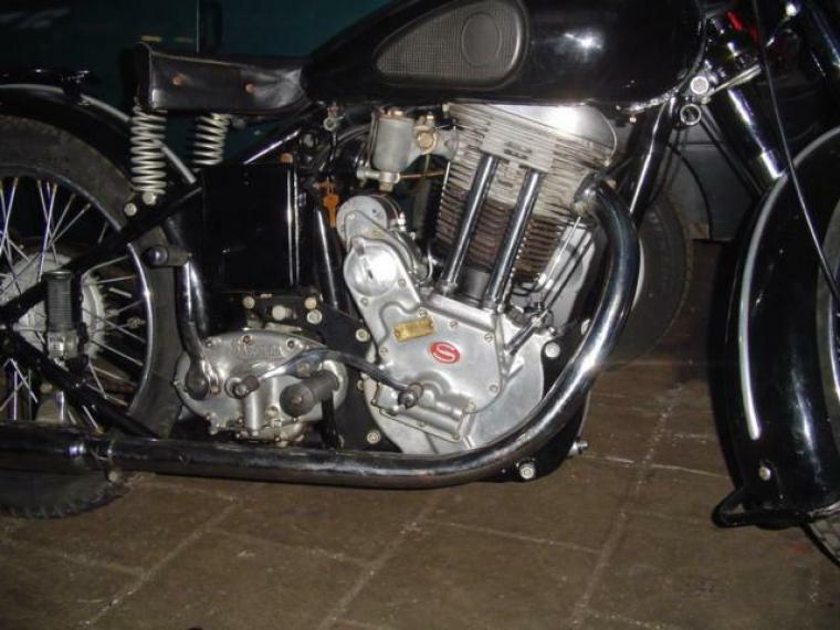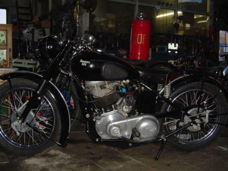 Many thanks to Martin Schutte for this picture of a 1948 Sarolea model S6 with 600cc OHV engine and Sarolea forks but still the pre-war rigid frame.