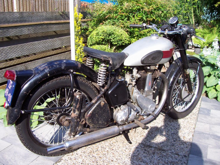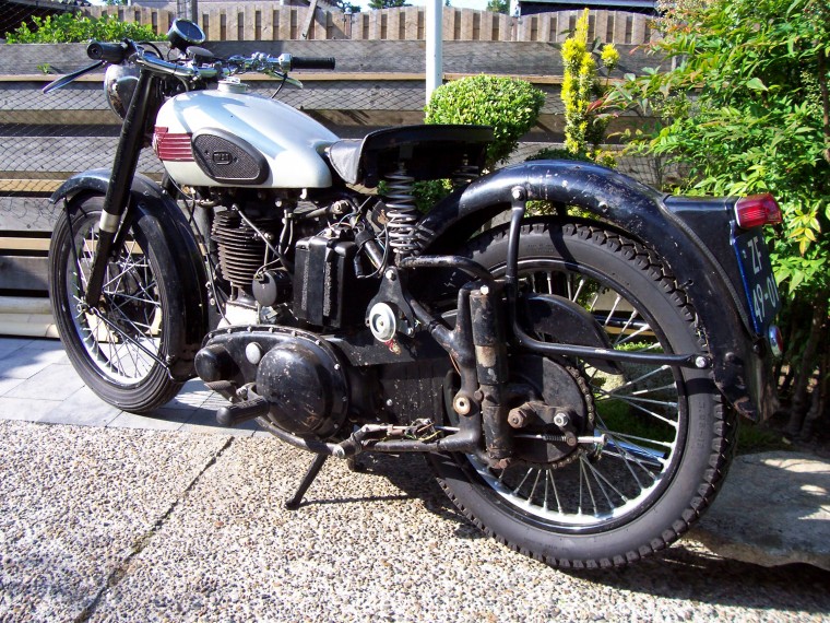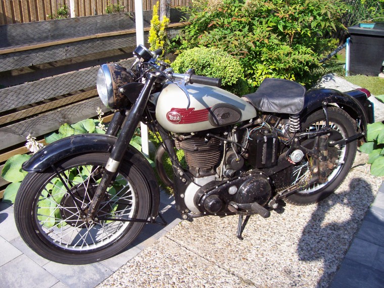 Many thanks to Theo Schipper for these pictures of his classic BSA M33. It’s a 500cc OHV engine that looks the same as the M23 only the cylinder head has vertical cooling fins. The bike was originally used by the Dutch AA with a sidecar fitted.